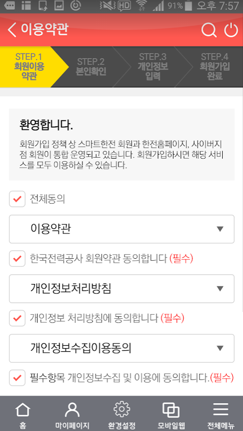 아래화면처럼 전체동의로 모두 체크하시고 밑으로 스크롤을 내립니다.