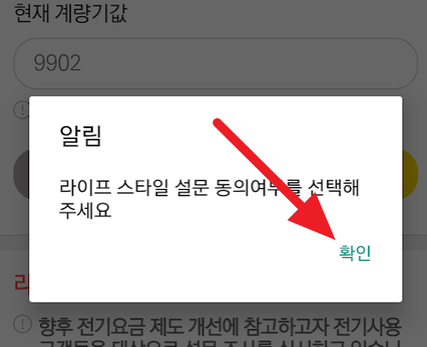 그럼 아래처럼 라이프 스타일 설문을 하라고 하는데요. 일단 확인누르고 "동의하지 않습니다"에 체크를 하고 다시 요금조회를 누릅니다.