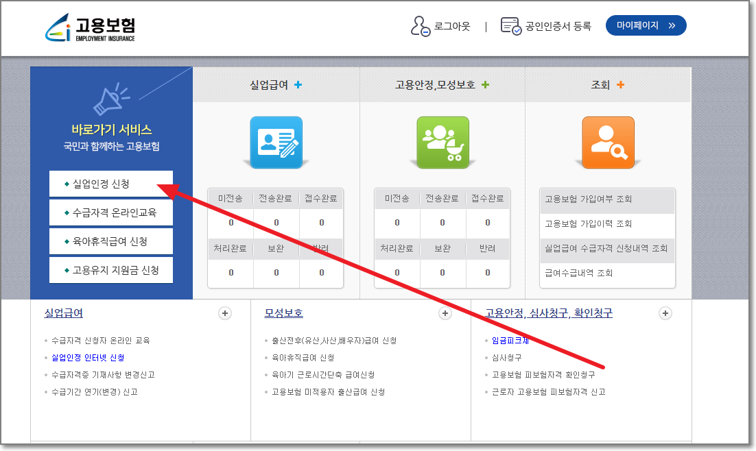 위에 3번 사항까지 모두 마쳐야만, 고용보험 홈페이지에서 "실업인정 신청"을 하실 수 있습니다.