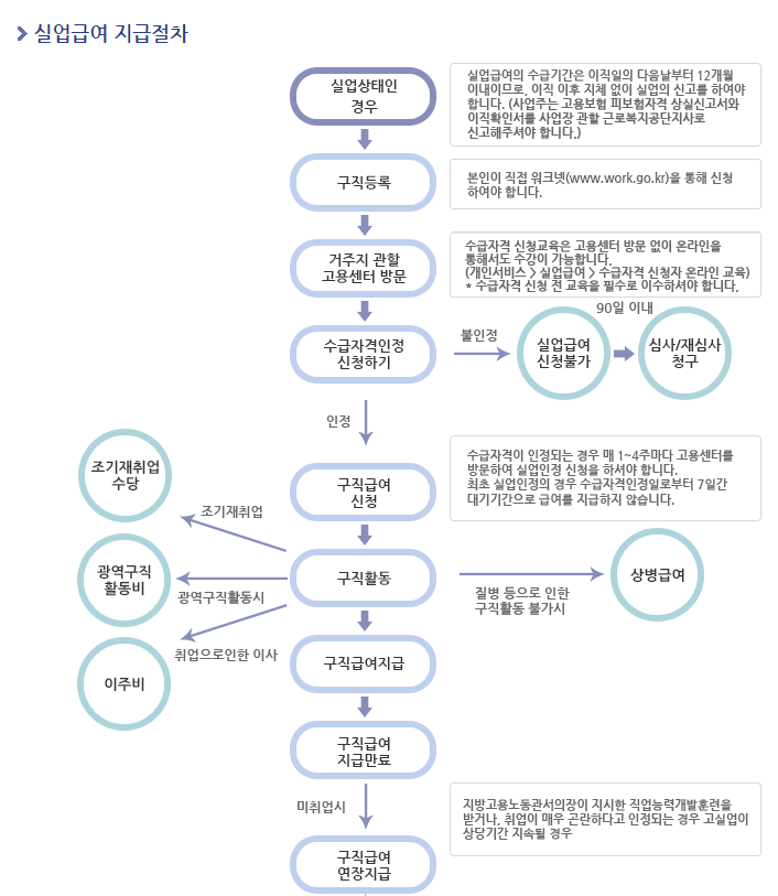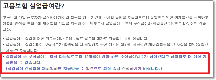 1. 실업급여를 받을 수 있는 기간은 직장을 그만둔 날부터 12개월 이내입니다. 따라서 직장을 그만두었으면 지체없이 바로 실업의 신고를 하셔야 합니다.