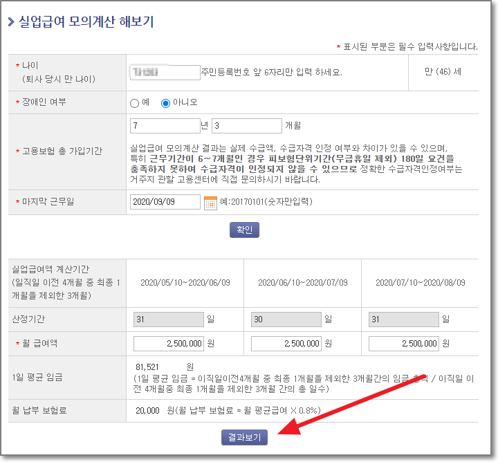 실업급여 모의계산 해보기