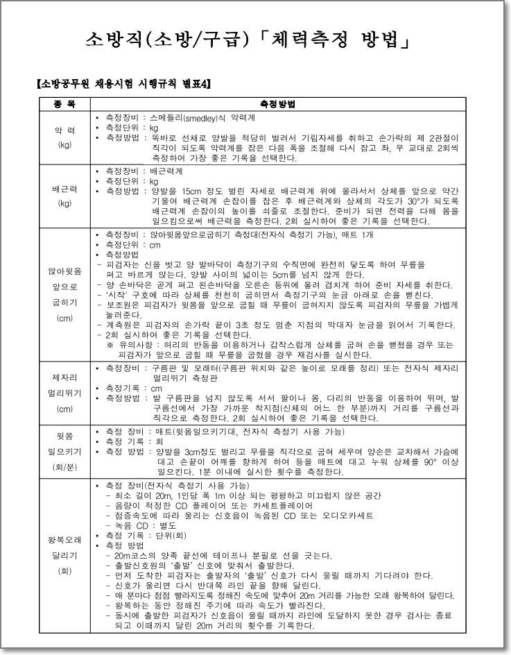 이상으로 소방 체력표 종목 및 측정방법에 대해서 알아보았습니다. 준비를 열심히 해서 꼭 소방공무원이 되시기를 기원드립니다.