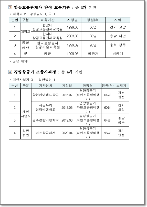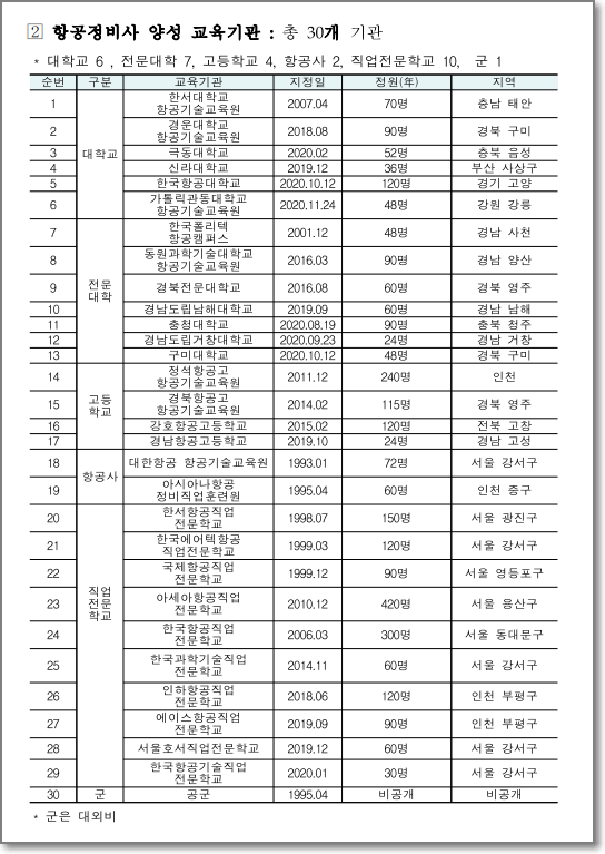 이상으로 조종사 양성기관인 전문교육기관과 현재 전문교육기관으로 지정받은 현황에 대해서 알아보았습니다.