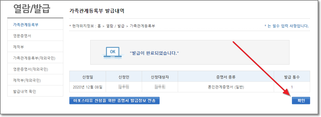 혼인관계증명서 역시 인터넷으로 발급받을 수 있는데요.