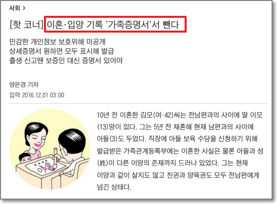 이는 개인정보보호를 강화하기 위해서 증명서제도가 개편되었고, 심지어 가족관계증명서에도 일반으로 떼면 가족의 현재혼인중인 내용이 나오고, 상세를 떼어야 모든 내용이 나옵니다.