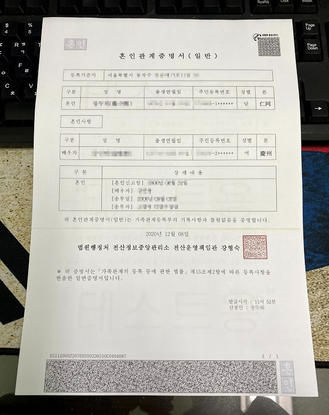 혼인관계증명서란 개인에 대한 결혼관계(혼인관계) 사항을 증명하는 서류를 말하는데요.