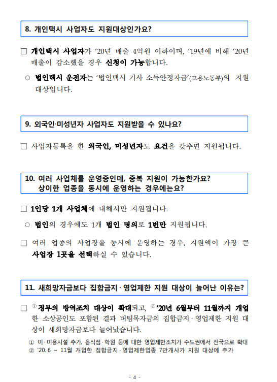 - 새희망자금 일반업종 기 수급자 (휴폐업 또는 집합금지·영업제한으로 변경된 업체 제외)