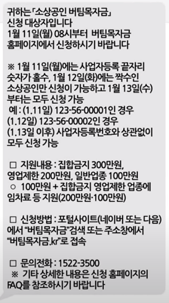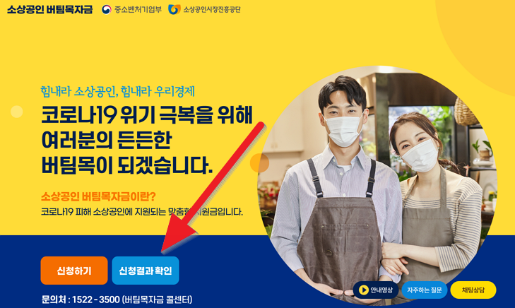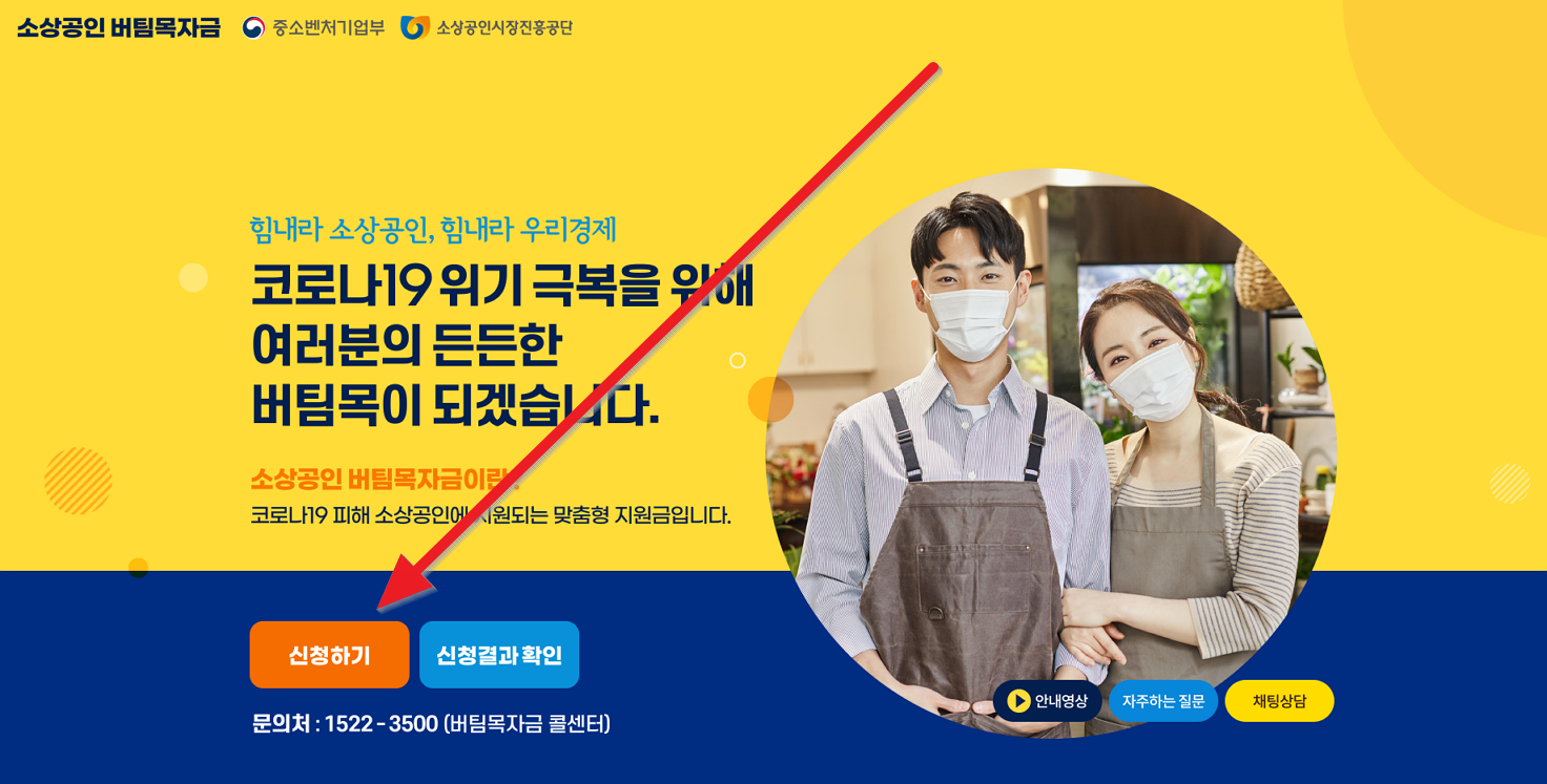 버팀목 자금이란, 코로나19 피해 소상공인분들에게 지급하는 맞춤형 지원금입니다. 버팀목 자금을 신청하는 방법을 그대로 따라할 수 있도록 구성하였습니다. 지금부터 그대로 따라만 해주시면 버팀목자금 신청이 완료 될 것입니다.