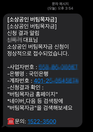 신청이 정상적으로 완료되었을 때 오는 문자