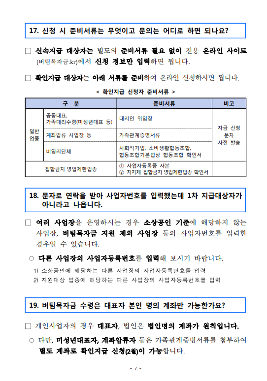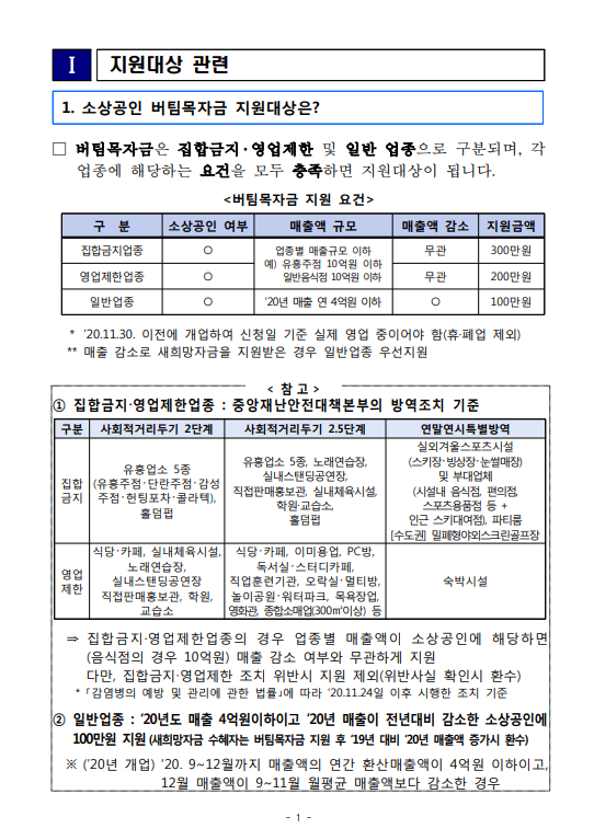- 공동대표 운영 소상공인, 1차 신속지급 누락 집합금지, 영업제한 소상공인 등 대상