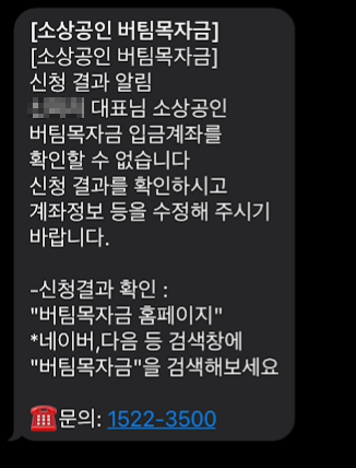 받으신 문자를 지우지 말고 놔두시면 나중에 지원금이 입금되었을 때 입금확인시 편리합니다. 신청 정보와 계좌 예금주 정보가 다를 경우 정상적으로 신청이 되지 않습니다. "신청실패"문자를 받으신 분은 맨처음에 있는 첫 화면에 있는 "신청결과 확인"을 통해서 계좌정보를 수정하시고 다시 재신청 하실 수 있습니다.