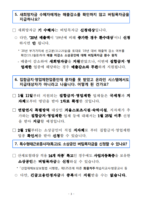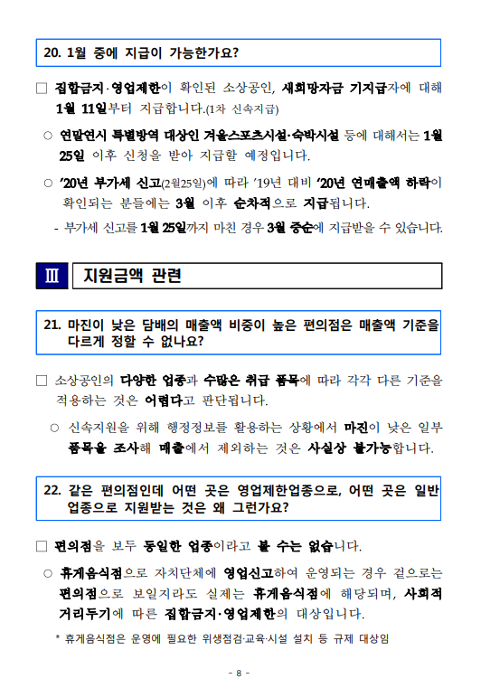 ◦ (1.25~) ’20년 개업자, 연말연시 특별방역 집합금지·영업제한 대상자 등