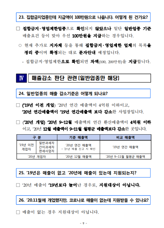 - 2020년 1~11월 개업자로서 12월 매출이 9~11월 평균 매출보다 감소한 경우
