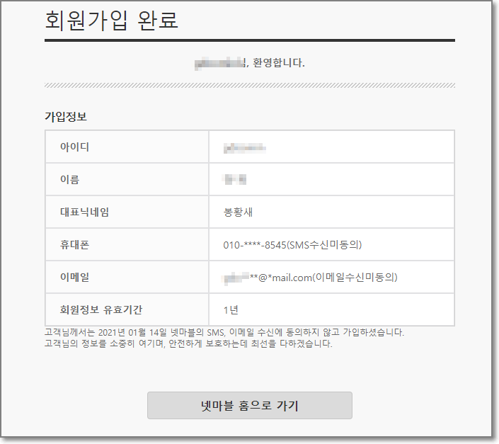 확인을 누르면 "대마불사"님 등록 완료하였습니다. 라고 나옵니다. 또 "확인"을 누릅니다.