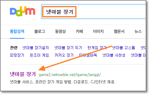 얼마전까지만 해도 만나서 장기를 두는 경우가 많았지만 코로나시대가 도래하면서 비대면이 각광을 받고 장기게임 또한 비대면으로 할 수 있다보니까 넷마블 장기가 인기를 끌고 있습니다. 장기게임을 하려면 일단 넷마블 장기로 접속을 해야하는데요. 아래처럼 다음에서 검색을 해서 들어가도 되지만, 여기서는 그럴필요가 없습니다. 왜냐면 제가 링크를 직접 가져와서 편리하게 누르기만 하면 넷마블 장기가 열리도록 해놓았거든요.