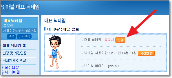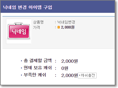 아래처럼 닉네임변경 아이템을 구매해야 한다고 나옵니다.