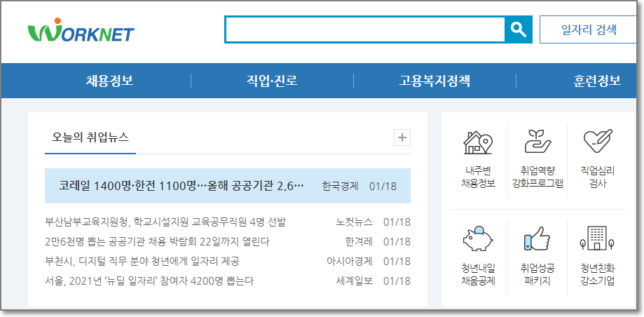 워크넷도 연결되게 해놓았습니다.