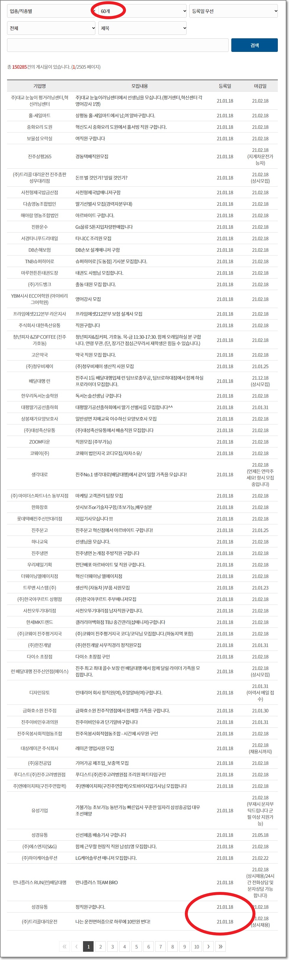 아래 보시는 것처럼 하루에 올라오는 글이 60개가 넘습니다. 그만큼 사람을 많이 찾고 있다는 것입니다.