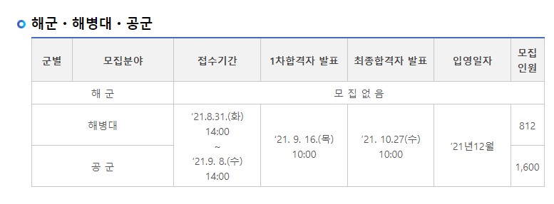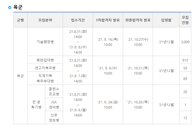 지정된 입대일에 지원하여 합격하면 며칠 내로 입대할 수 있음을 유의하시기 바랍니다.