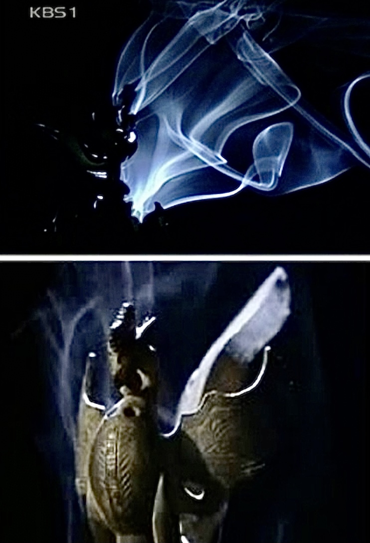 향로는 원래 향을 피우기 위한 물건으로 금동대향로 안에 향을 넣으면 12개의 구멍에서 연기가 나온다고 합니다.