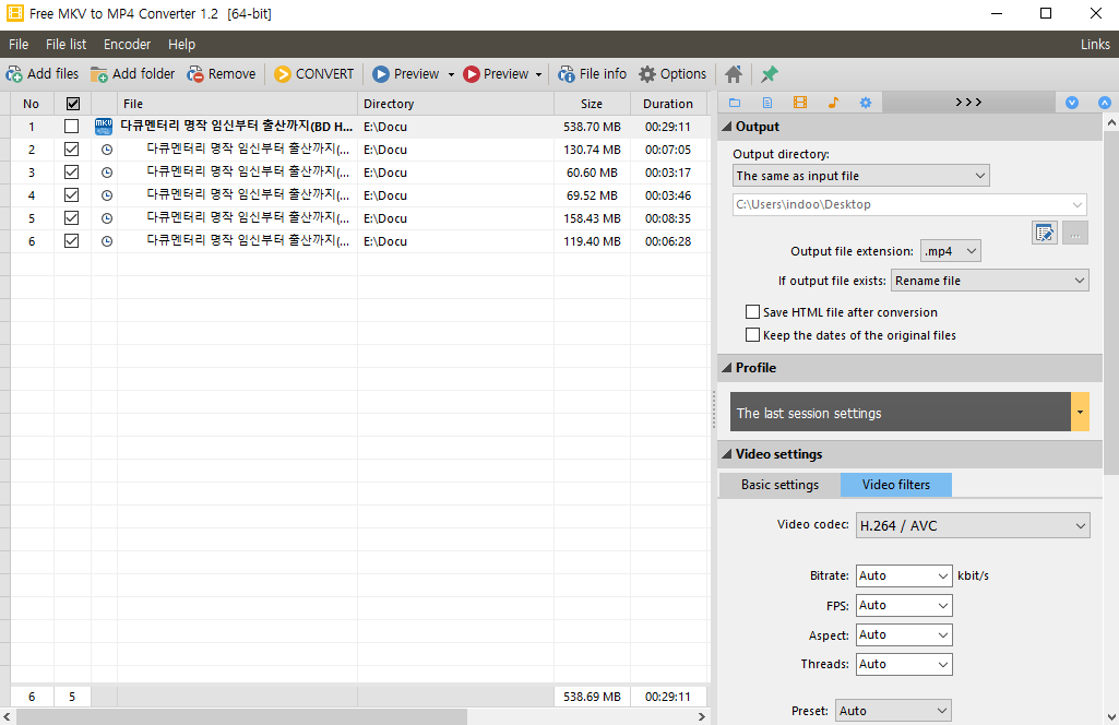 여기까지 해서 간단한 20메가 짜리 단독 (포터블) 프로그램으로 MKV를 MP4로 변환하는 법을 알아보았습니다.